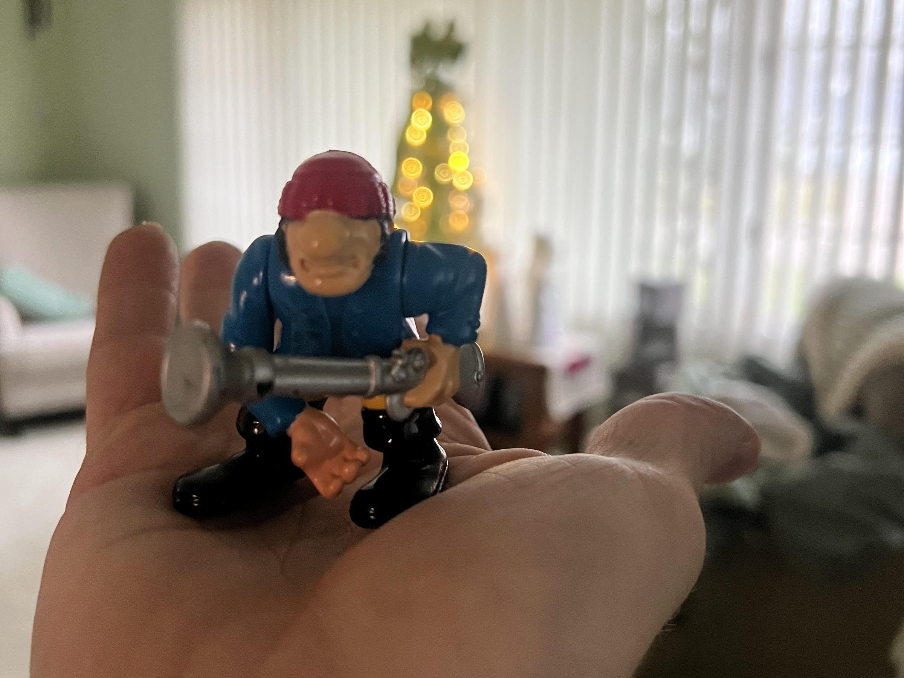 We’ve just returned from visiting a portion of Adreanna’s family for the holidays. While we were there, my daughter picked up an old plastic figurine—a hunched figure in a red cap, blue sweater, and black boots, grimacing as he held a musket—and said, plainly, “This is a bad guy.”